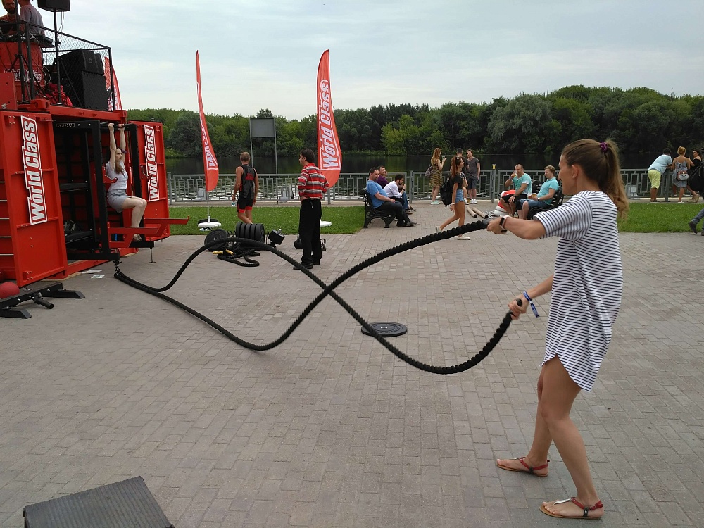 Впервые за историю самого, пожалуй, стильного и продвинутого праздника московского лета партнёром ивента выступил фитнес-клуб. Разумеется, лидер индустрии — World Class. Тренеры Игорь Рыжов, Вадим Осецкий и Валентина Шинкаренко с самого начала фестиваля и до вечера вели интенсивные тренировки и соревнования на Gym Station. В «Коломенском», кстати, и состоялась презентация долгожданного, нового формата тренировок в режиме open air.